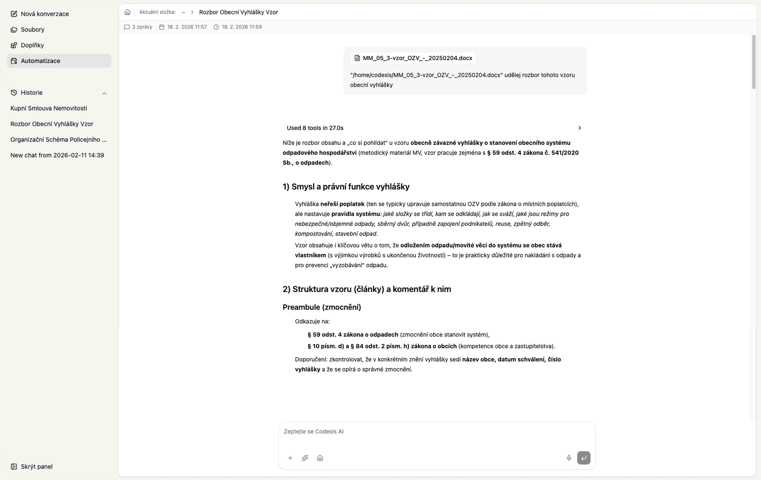 Aplikace pročítá všechny potřebné dokumenty, analyzuje je, hledá souvislosti, porovnává je a vyvozuje závěry. Narozdíl od zastaralých chatbotů je nové CODEXIS AI postaveno jako nativně agentní AI systém.